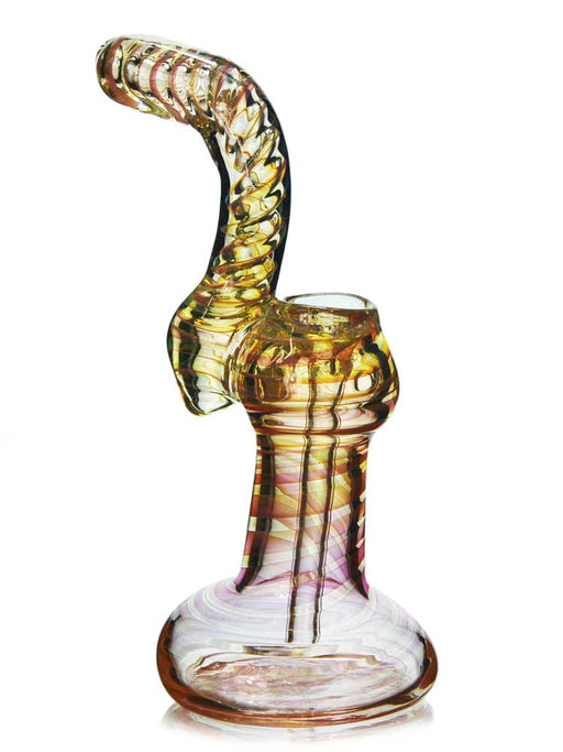 The pink double bubbler is a gorgeous bubbler with gold fumed glass to give it a unique metallic finish. Check out the beautiful color fade from ro...