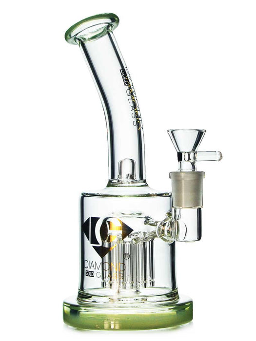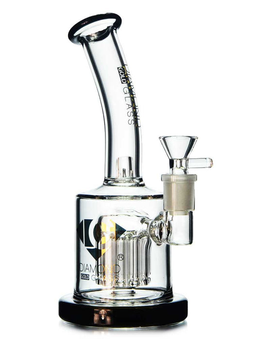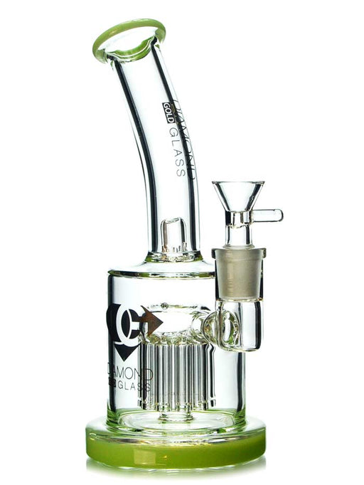 This thick unit by SWERV Glass is an incredible bubbler style bong with a 8-arm tree perc. It stands 8 inches tall and has a bent neck for a really comfortable hit. The neck also stops water from climbing up into your mouth. No fear of splash back from even huge rips.