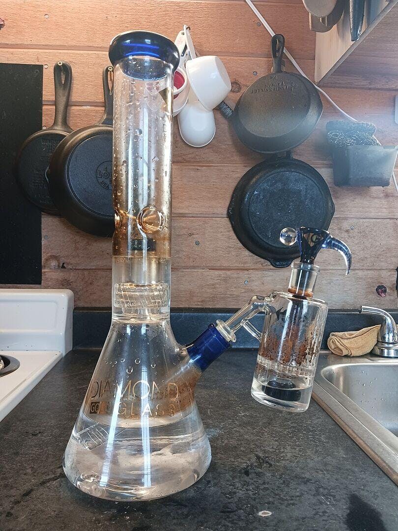 The 5mm thick beaker bong by Diamond Glass features a matrix percolator that is made to blast bubbles out for a smooth smoke. This bong has got some serious weight to it, at just 15 inches this thicc beaker is made to last. The joint was made extra thick to remove any vulnerabilities.