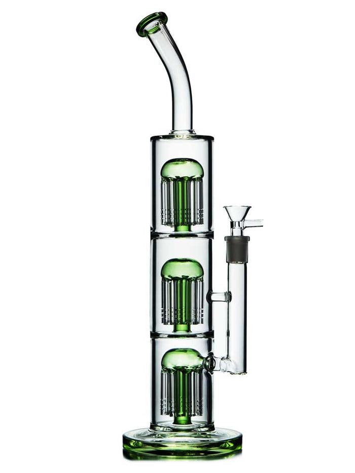Despite its common name, this 17 inch triple chamber bong is anything but simple. Featuring 3 insanely identical and symmetrical tree percolators with perfect size laser cut slits all around, you get triple diffusion for the ultimate smoking experience. With a low drag, you won't believe how easy it is to clear a full foot and a half of glass. Best of all, you can smoke sitting down!