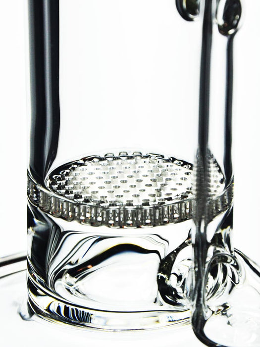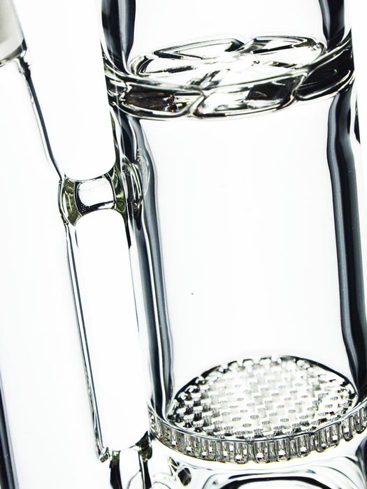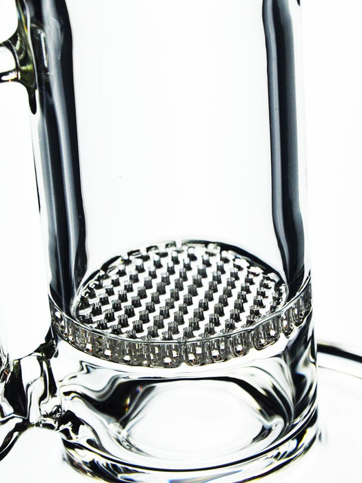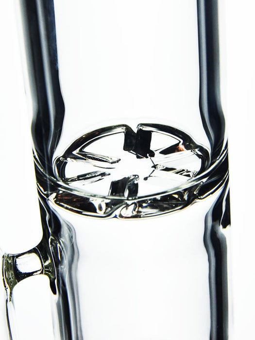 The double honeycomb to turbine by SWRV glass is a thick, and durable bong. If you are looking for something easy to use, easy to clean, and ready to rip at any time, then this one is definitely at the top of our list. The honeycomb disc by SWRV is unlike any other honeycombs we have seen, with better sized holes, and polished finish for a burst of bubbles. But to keep the bubbles from climbing straight up, they added a turbine disc to spin the water and keep your lips dry.