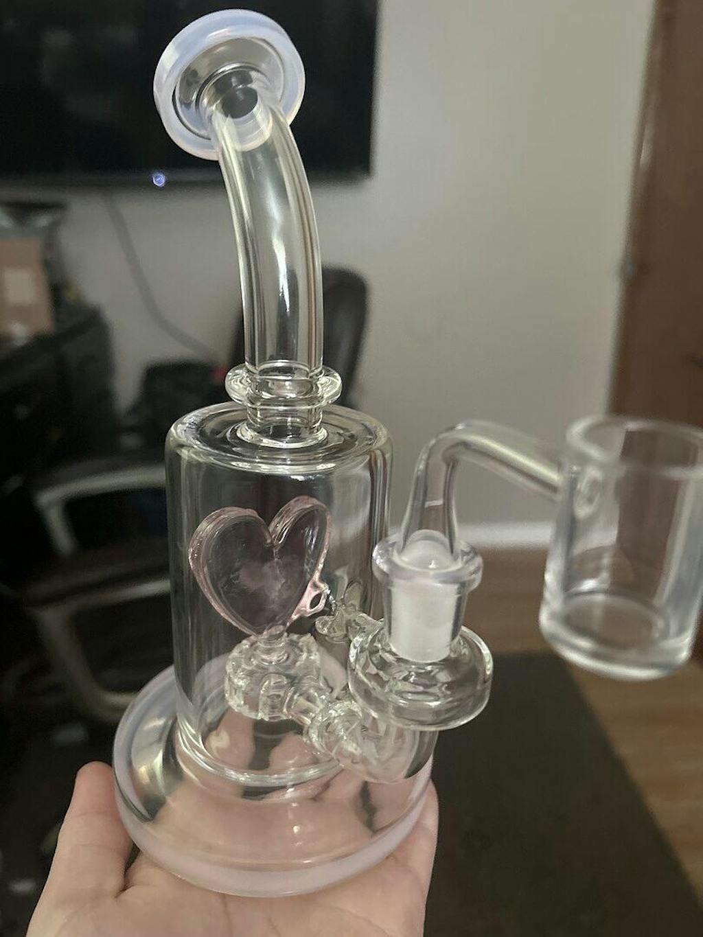 Introducing the Sweetheart Dab Rig by SWRV! This one-of-a-kind rig features a heart-shaped design and a showerhead perc for smooth hits. Fall in love with your dab sessions with the Sweetheart Dab Rig.