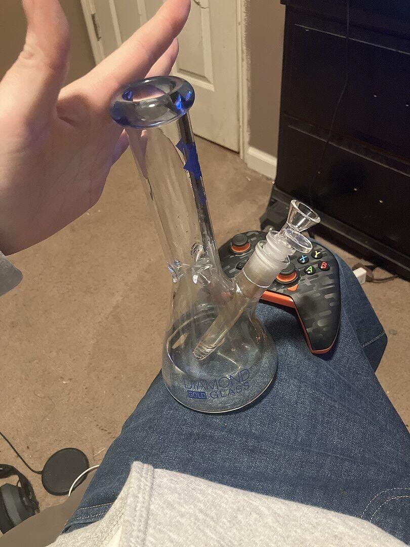 The 10 inch beaker bong by Diamond Glass Gold is the ultimate daily use type of bong. This medium size bong is great for on the go, or even at home on the couch. The classic bong is super convenient and fun to have around at all times because it hits like a champ without being too bulky.