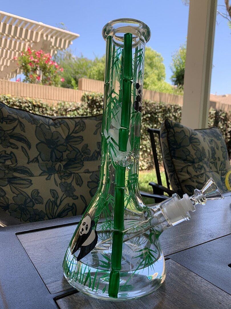 This beautiful Panda Bong is covered in vibrant leaves and hand-painted pandas. This joyful bong will make you as happy as the panda on the front of it. While the pandas playing in the trees, you can be burning some trees with this incredibly thick beaker bong. You can never go wrong with a classic straight tube and one this thick is definitely built to last. Vibrant bamboo stalks give this piece intense color while the bold, charming pandas keep you company for every session. If you think it looks good in pictures, know that the Panda Bong is even more incredible in person.