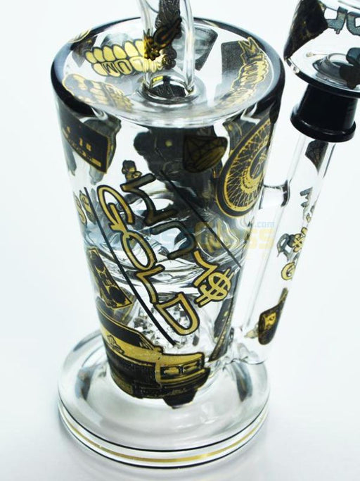 Height: 9 inches Percs: Brilliance Perc with Turbine Splash Guard Glass Thickness: 5mm Borosilicate Glass Made in California by Hitman Glass. Qua...
