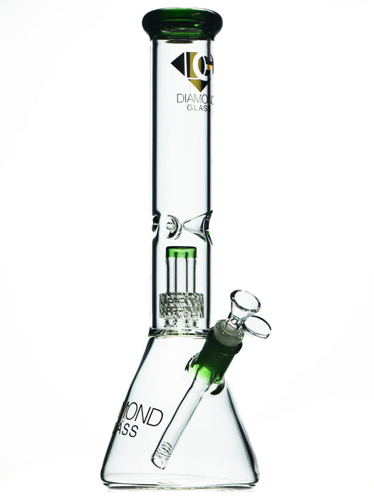 The 5mm thick beaker bong by Diamond Glass features a matrix percolator that is made to blast bubbles out for a smooth smoke. This bong has got some serious weight to it, at just 15 inches this thicc beaker is made to last. The joint was made extra thick to remove any vulnerabilities.