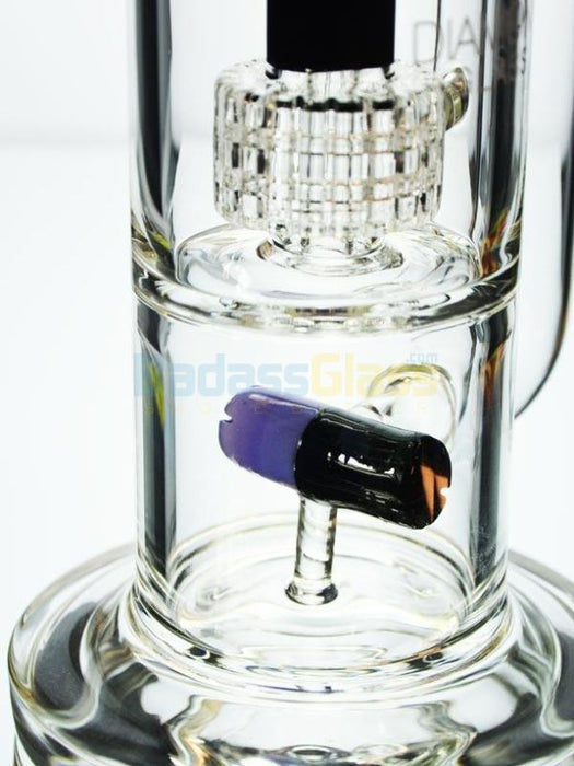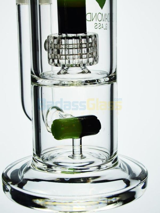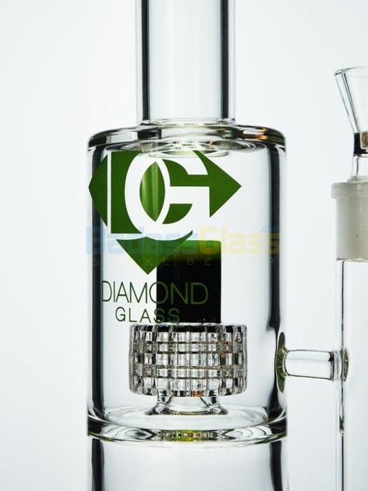 The Diamond Glass decal also comes in your choice of color, as does the detail above the matrix perc. This rig is over a foot tall, and features a long, slender neck to reduce splash and keep you dry. It's the perfect table top piece for beginners and experts alike.