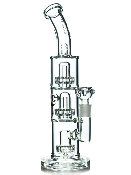 The Triple Showerhead Bong by SWRV Glass features three precision cut showerhead percolators for a 3x filtered hit with no drag. Standing tall at...