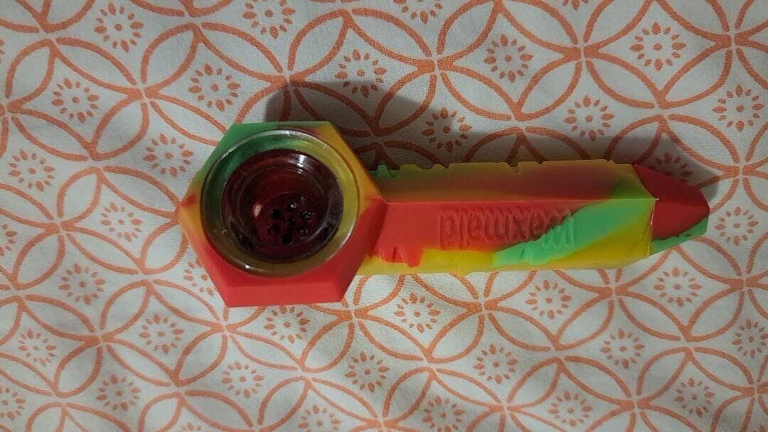 This pipe features a glass bowl, the body of the pipe fills up with water and you can freeze it this way you get a cooler hit without frosting up the bowl and soaking the herb.