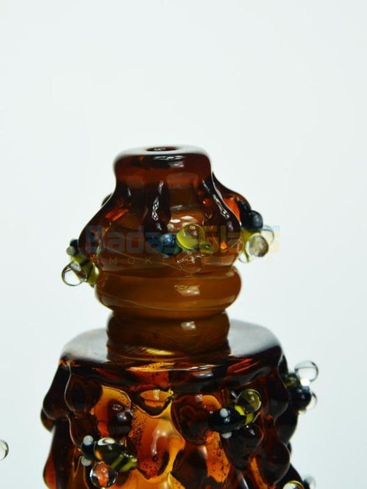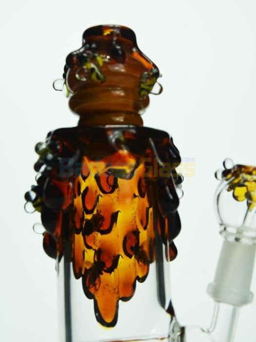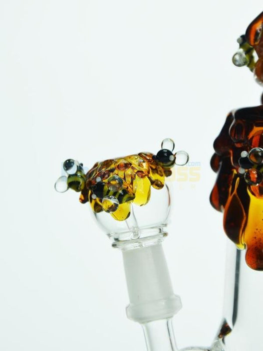 This un-bee-lievable Bee hive nano rig is an amazing show of craftsmanship from our friends at Empire Glassworks. From top to bottom, this rig offers a unique look to the traditional dab rig and it works like a bee hive of busy worker bees. The thick, honey-like glass not only looks cool, but protects the body of the rig, giving you a nice, sturdy piece to add to your set up. The stocky mouthpiece gives you plenty of room to inhale and enjoy the hit while the inline perc works to filter your hit. All in all, these features come together to give you the highly popular bee hive nano rig.