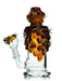 This nano rig with fixed diffused downstem and Beehive themed work. Accompanied by a matching beehive flower bowl, but it would look just as good with a banger or other oil accessories. A fun collector's rig available now at a great price, not to mention it pairs well with the bee hive nano rig if you're looking for a portable dry herb version to make a matching set.