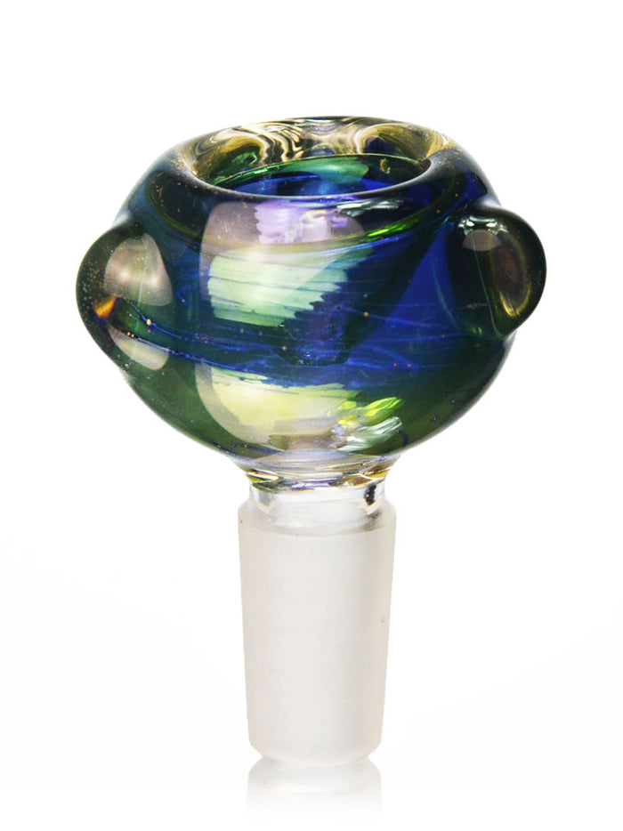 Blast off with this cosmic themed bowl featuring a unique color combination unlike anything we've seen before. This thick glass bowl has the perfect capacity and a nice sized hole for good airflow and just the right amount of resistance.