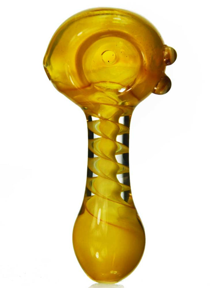 Th 3" spoon pipe is a pocket sized pipe with a deep bowl. Gold fumed throughout gives a beautiful deep yellow color.