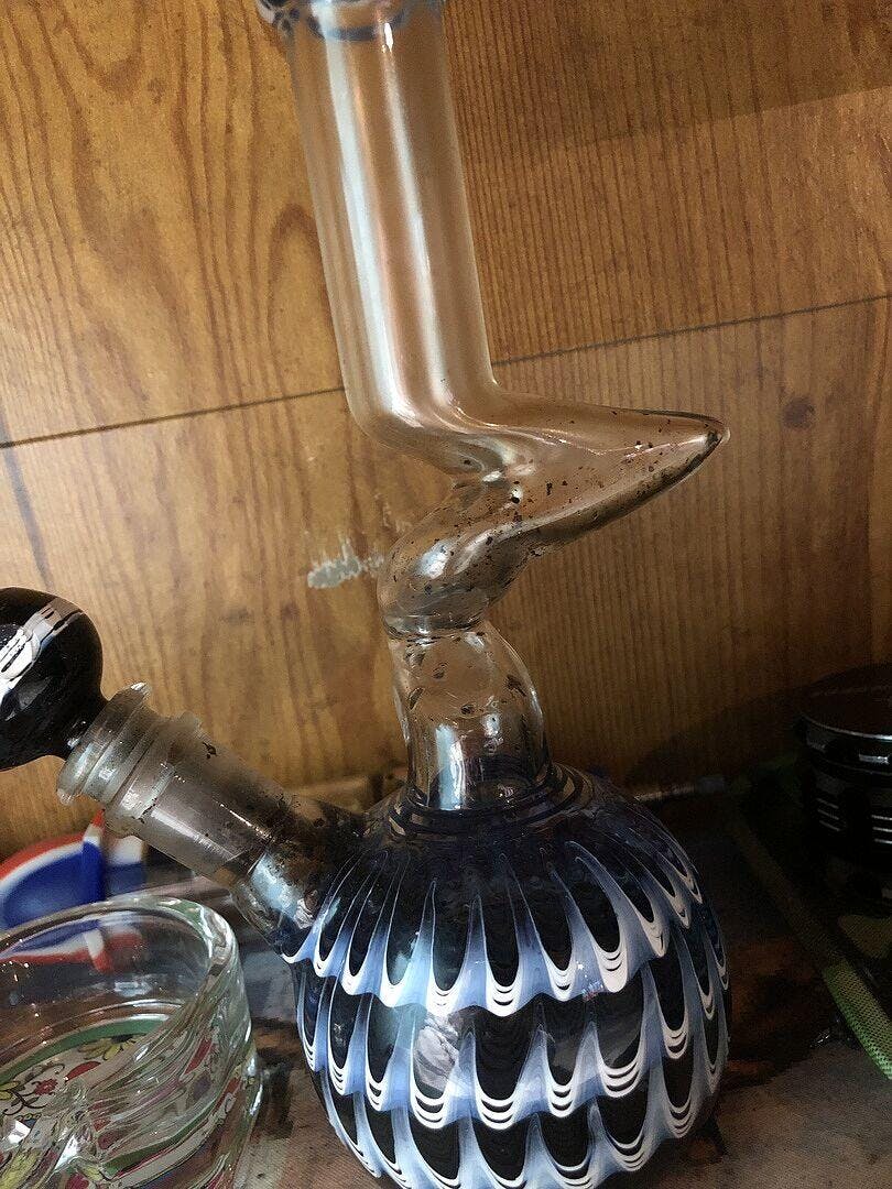 This z shaped bong is perfect for just about anyone, this 8 inch water pipe comes with a touch of color around the base and around the mouth. We love the thickness of this bong, the z-shaped glass bong is always fun to smoke out of and looks pretty rad when you clear the tube. This glass on glass design comes with a matching blue bowl piece. The twisted tube is great for eliminating splash and providing a nice cool smoke.