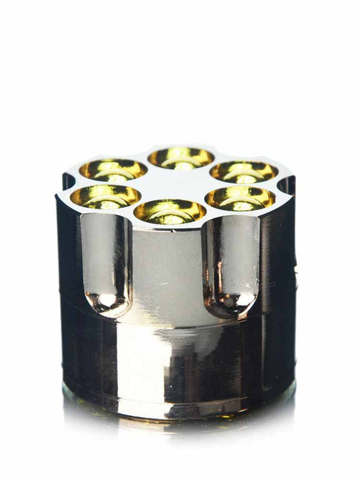 The bullet grinder is definitely one badass looking grinder. It's equipped with multiple grinding teeth, a kief catch, and a stash compartment that allows you to carry either your grinder or stash in separate compartments. Pop this revolver into your pocket, pack, or purse, and you are ready to go.