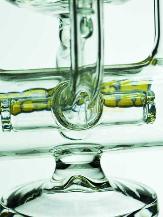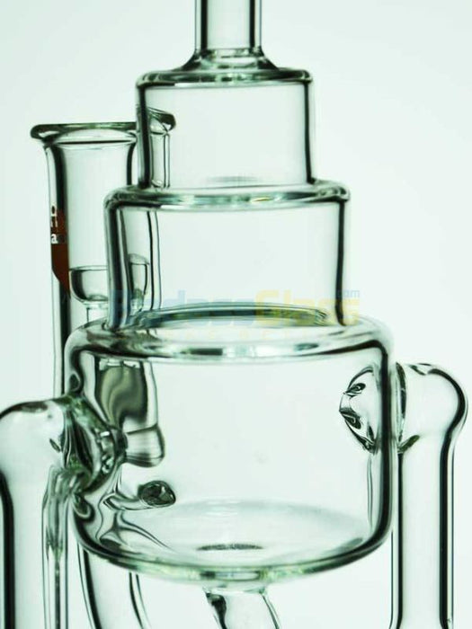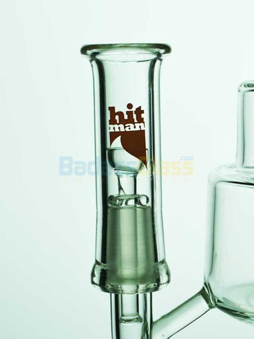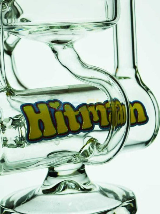 This is another beautifully crafted piece by Hitman Glass. The bottom barrel features a 4 slot perc on each side as it bubbles up into the cake and back down to the bottom. You can not go wrong with Hitman Glass