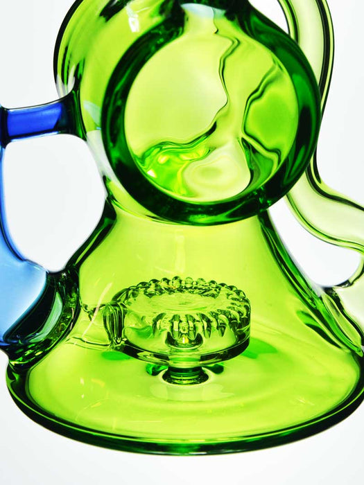 If you're picky about percolation, this gorgeous rig will exceed all your expectations. It actually features three full levels of diffusion, starting with the unique AFM tire percolator that erupts with thousands of tiny bubbles. These bubbles are then broken down by the Swiss bowl in the second chamber before being recycled back down to the first chamber in a swirling cyclone. The result is a healthier, gentler smoke with a smooth, full flavor.