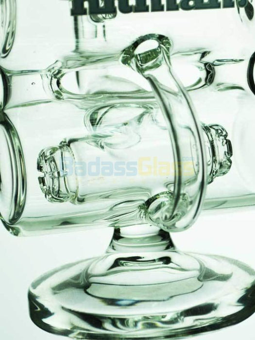 You know you're in for a treat when you see that Hitman logo. These guys take workmanship to a whole new level, putting their personal spin on every piece. This Double Barrel Recycler is no exception. It's crafted with 5mm borosilicate throughout, standing on a thick, heavy base. The texture and weight of this glass lets you know it's made of exceptional quality right off the bat.