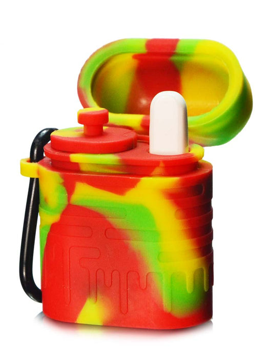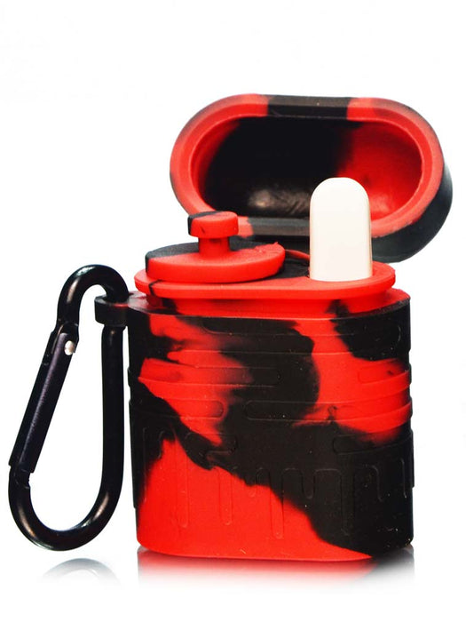 Love this silicone dugout by Waxmaid! It's got plenty of storage for your tobacco or herbs! I'd say probably about 5 grams worth if not more! I like how the taster bat is made because the tip doesn't get hot although the titanium part does after about 3 hits. It doesn't look like it will hold much in the taster bat but it holds enough for about 3 maybe 4 good hits! So not just a one hitter! Plus, it's waterproof and smell proof. Haven't tested the waterproof capability yet but when closed it has a pretty tight seal. I definitely can't smell anything through it. That doesn't mean dogs can't lol. It also comes with a handy carabiner clip for easy portability and a cleaning tool. It's a great durable product at a decent price! Highly recommend! Would be great as a gift!