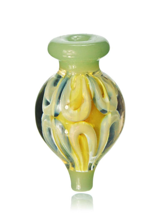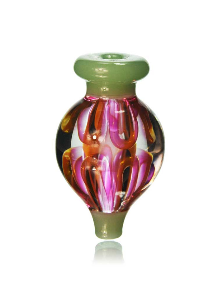 Get your hands on a green bubble cap that fits up to 25mm and 30mm buckets. The bubble cap has been changing the smoking game and is quickly becoming a required item for the most avid dabbers. Due to the design and ability to restrict airflow and allow you to control it, you can get the most savory hits, every time! The green bubble cap compliments just about any light color scheme when it comes to bongs and dab rigs.