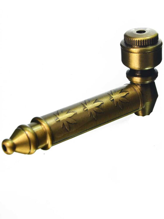 The metal pipe with screw on lid has a nice pattern of leaf's coming down the side. The lid has nice threading so its very smooth to screw on and off. The hole on top of the cap is perfect so you can light your bowl with the cap on or off.