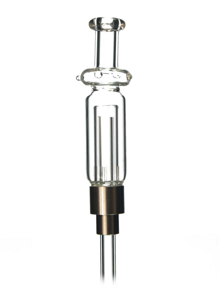 The mini dab straw is ideal for those who want something portable yet still rips like a bigger honey collector. This little honey straw allows you to put some water in it as well. It comes in a little travel pouch with a silicon jar and three types of nails.