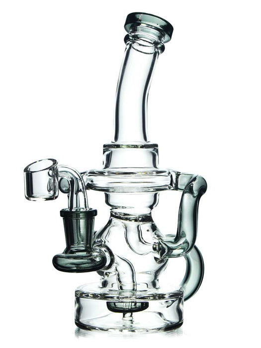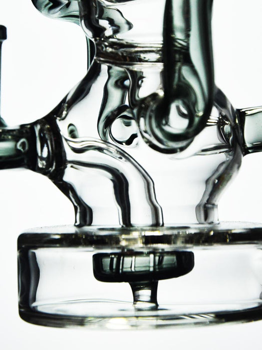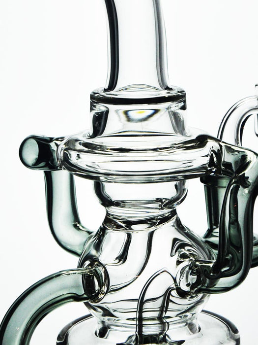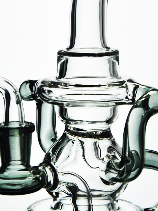 The Mini Double Recycler rig is equipped with top and bottom water chambers for maximum flavor, function, and air flow. When you inhale, you pull the water from the bottom main reservoir or chamber, and it flows up through the recycler rig's side and top chambers. Then the water is recycled back down through the rig, where it collects again in the bottom reservoir. This function results in smoother hits, packing great flavor in every hit!