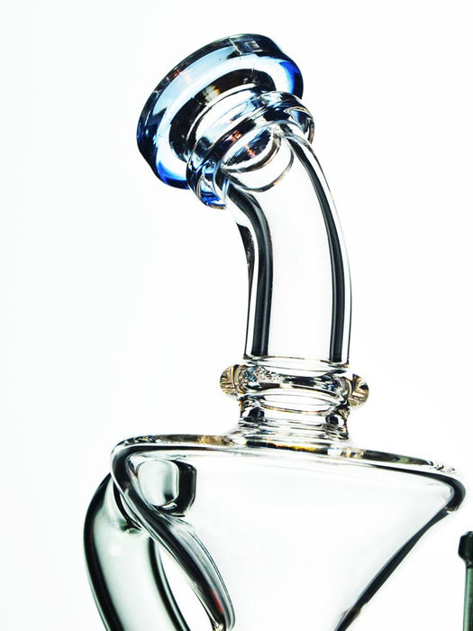 Who says mini rigs have to be simple? Diamond Glass will blow you away with how much intricate detail and precision is packed into this tiny 6” recycler. Look first to the gorgeous slitted half-barrel perc. It draws from both the nail and the upper chamber, where water is continuously cycled. Recycling both eliminates splash and cools smoke, releasing its full flavor. You'll be amazed at how smooth this thing rips despite its compact size.