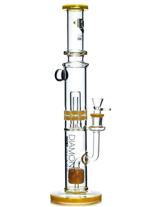 This gorgeous bong comes to us from none other than the masters at Diamond Glass. They've created one of the coolest percs we've ever seen. Nice sized slits line the moonrock percolator, delivering smooth, balanced diffusion hit after hit. Thousands of bubbles climb up the long chamber, but the cinched top long mouthpiece eliminate splash. You get nothing but the coolest, most flavorful smoke whether you're dabbing or smoking flower.