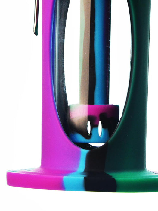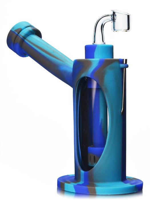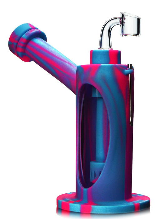 This dab bubbler is a real work of art that combines the durability of silicone with the clear beautiful glass body. We never thought a silicone rig could be so nice but we were wrong. This thing has an amazing percolator and comes equipped with a quartz banger. No longer will you have to worry about breaking your rig. This heavy set dab rig has a nice firm stance that you can take anywhere.