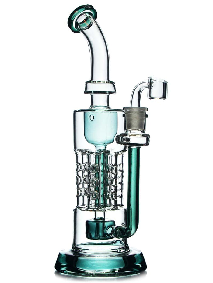 I was trying to find a similar dab rig to match my first rig before it broke. That rig which had great percolation, had also a nice vortex recycling action on top which also doubled as a splash guard. This being with Swiss pillar percs makes it more of an upgrade since it’s almost like carbonating the water midway with thousands of tiny bubbles created. This is very satisfying to see and gets me excited because I know it’s gonna be a milky smooth hit thick and full of flavor. Compared to the many glass rigs in my collection, this one ranks high