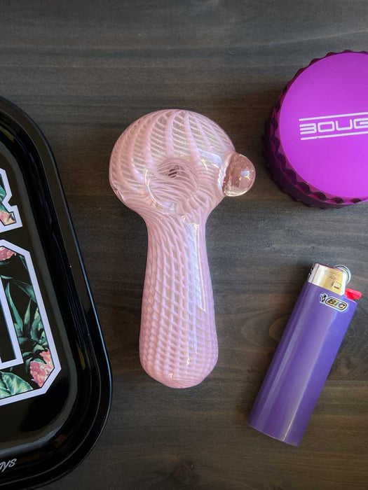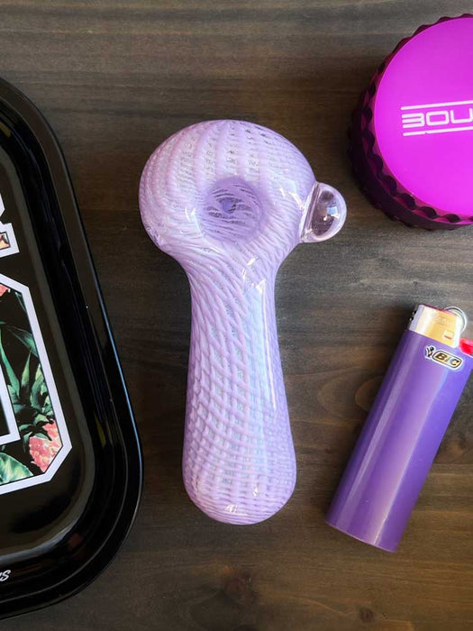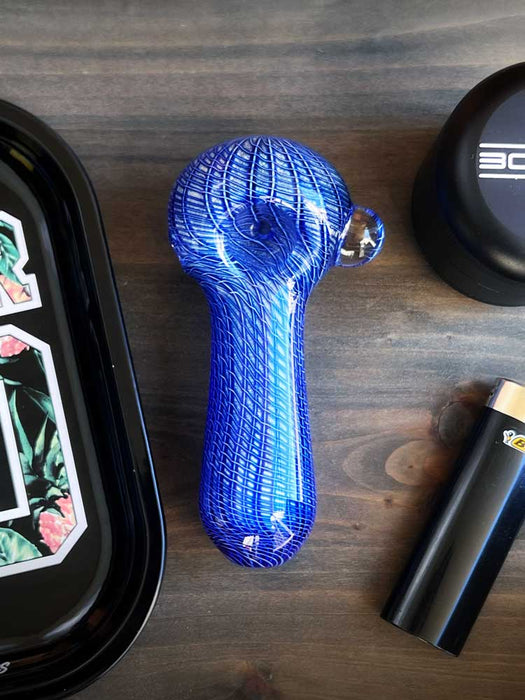 The perfect pipe is a double blown glass pipe featuring a nice deep bowl. It also has this beautiful woven pattern all throughout. The pipe has the perfect sized carb hole, bowl hole, and mouth hole making it ideal for everyday use.