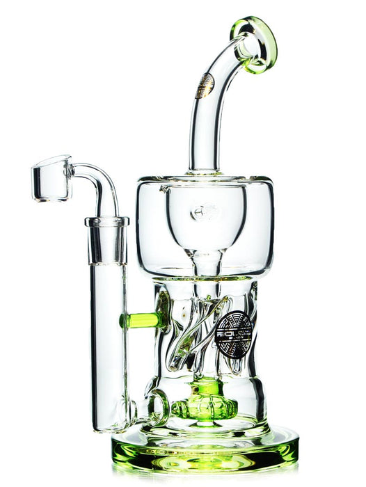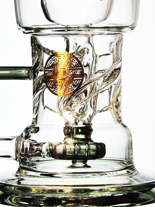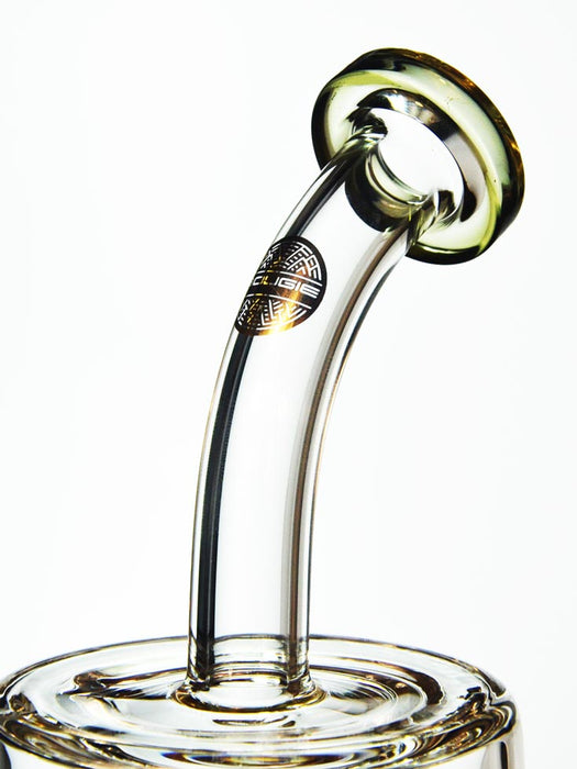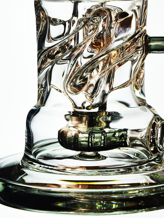 This twisted incycler dab rig by Bougie Glass features amazing functionality combined with beautiful aesthetics.  This crystal clear dab rig comes equipped with a showerhead perc leading up a twisted body and straight into a chamber that drowns down the middle back into the perc for a splash free hit.   It's hard to put into words but this rig puts in work!