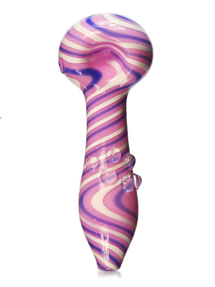 This brightly-colored Unicorn Hand Pipe is just as shiny and luring as the horn of a majestic unicorn. Eye catching colors swirl through this pipe and tantalize its users. The glass is also fumed so as you use it, the lighter colors will begin to change and develop. This pipe gives off a whimsical look but don't let its cuteness fool you, this is one sturdy piece!