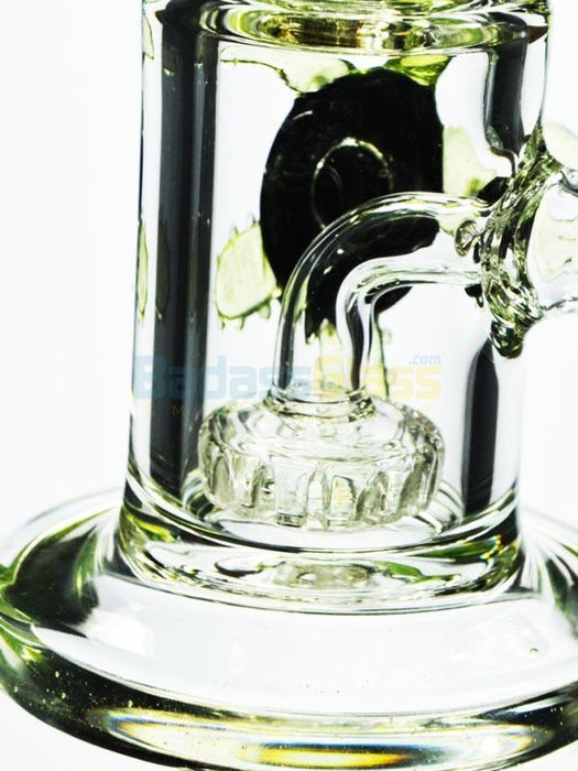 At a full 8 Inches tall, this hypnotic rig can't be ignored, drawing you in with its beautiful details and faint green color. Once illuminated by UV light, it takes on another form by glowing brightly from top to bottom. This rig looks great whether in the daylight or under black light, and is sure to impress with its functionality, too.