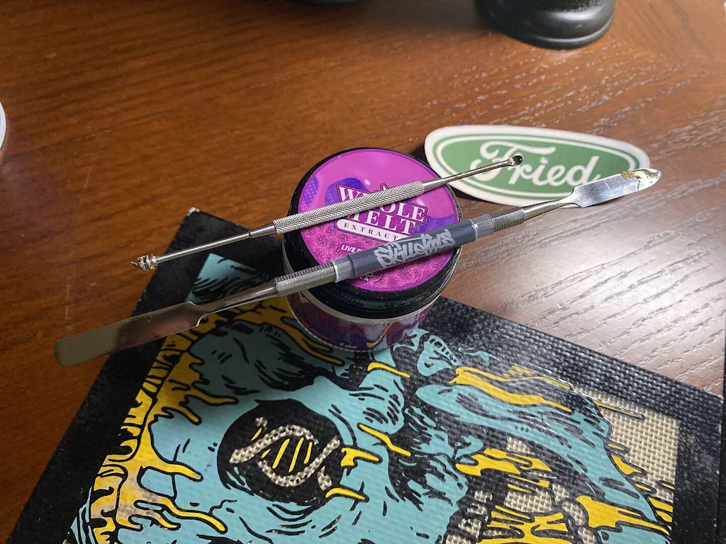 A two sided dabber with flat ends on both sides for oil and waxes.Length: 7 1/2" inches.